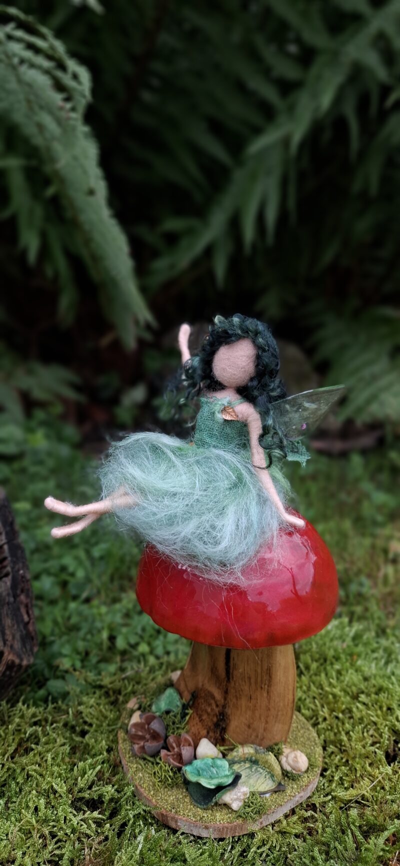 Diese zauberhafte kleine Fee hat es sich auf einem Pilz gemütlich gemacht 🍄💫 – fast so, als wäre sie direkt aus einem Märchen entsprungen. Zwischen Moos, Farn und Steinen wirkt sie, als würde sie uns in ihre Welt der Fantasie und Leichtigkeit einladen.